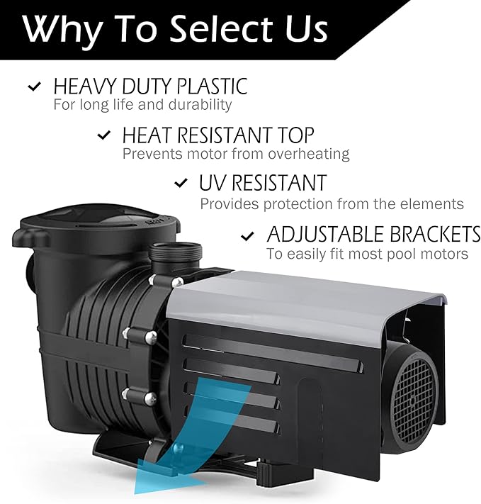 - Pump Protector - Adjustable motor cover keeps your motor safe from UV, rain, dust or the sun that add years life of your above-ground well pump or pool water pump in both summer and winter.