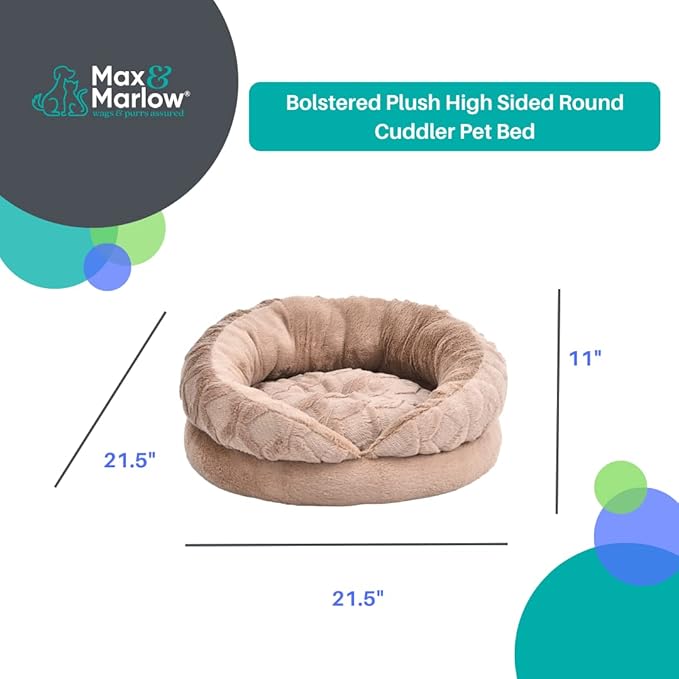 Plush High Sided Round Cuddler Pet Bed with Remove-able Bed Pad