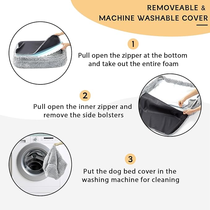 - Washable Waterproof Cover: Our dog bed has a waterproof surface, it is detachable for a easy maintenance, premium smooth zipper ensures a long service life. Simply remove the cover and toss it in the washing machine for a quick and convenient cleaning process, ensuring a fresh and hygienic sleeping environment for your pup