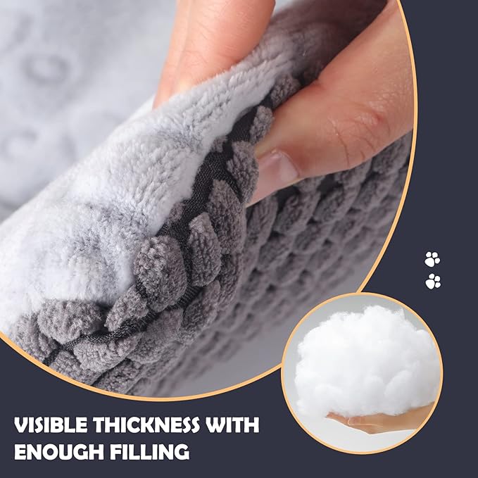 - 【Good Design】: The dog mat can be used on both sides, one side is flannel material fabric, the other side is soft corduroy. The surface is embossed with cute paw patterns. The simple and elegant design is suitable to be placed anywhere in the house and used to decorate your room. Your furry friend will love this pretty dog mattress.