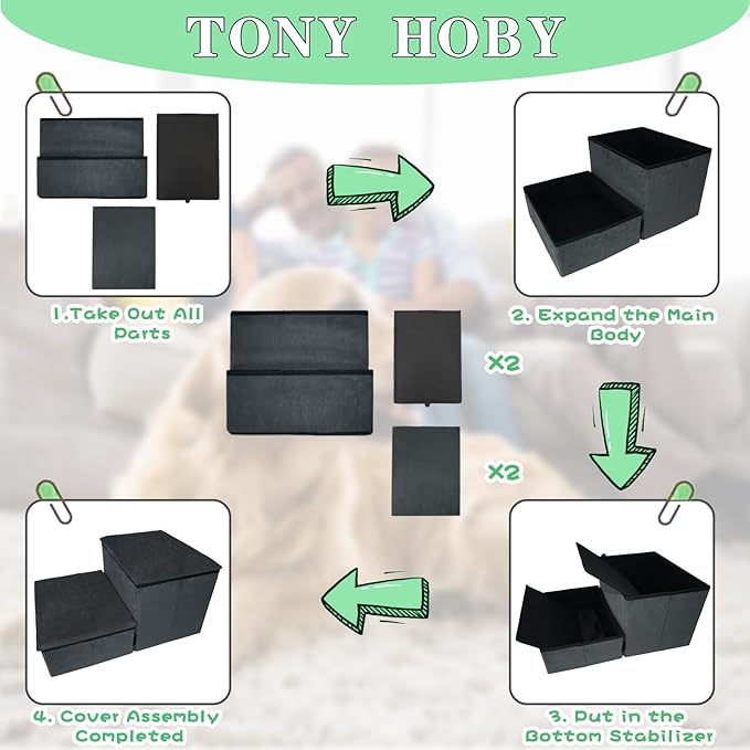 - ❤【Powerful Functions】-TONY HOBY Foldable Dog Stairs is a fabric storage box with storage function. Not only can be used as indoor stairs for dogs, open the lid of the box, you can also store your dog's food, snacks, toys and other daily necessities. With a variety of ways to use