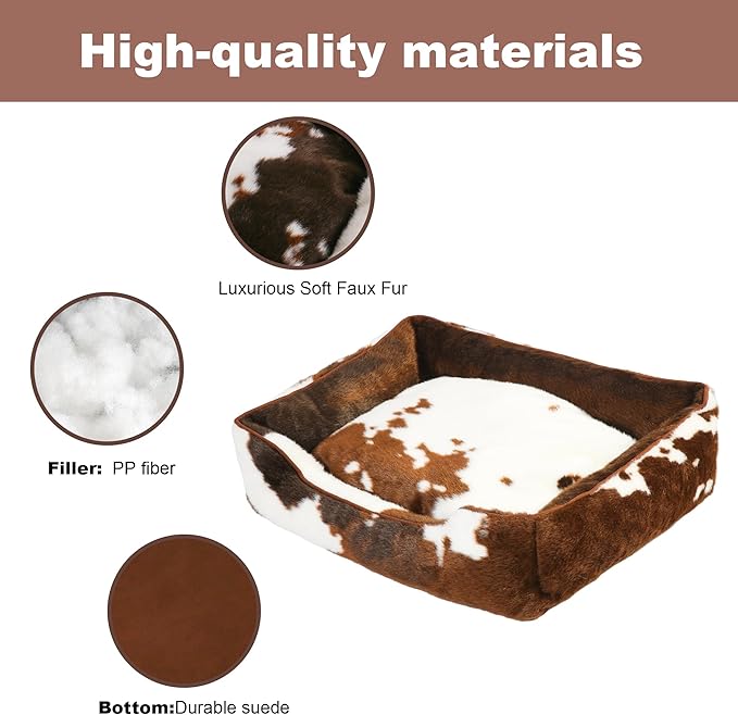 - Premium Quality & Durable: Our rectangular dog bed is crafted with luxury cowhide faux fur material and features thick stuffing on the bottom and sides. Designed to withstand frequent use,maintaining its shape and support over time