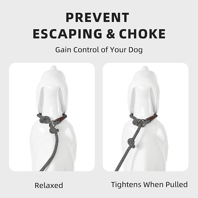 - Quality Material: Premium reflective heavy duty climbing rope slip leash with leather tips. Perfect training leash for puppy.