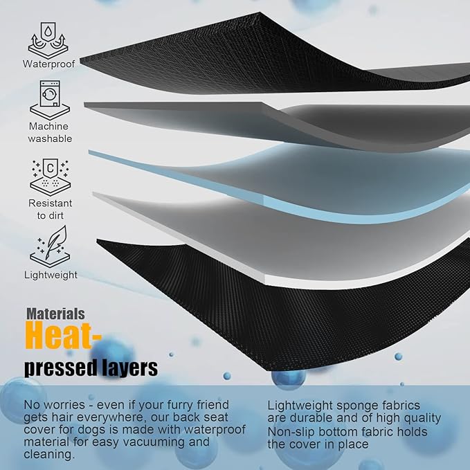 - 【EASY TO CLEAN AND 100% WATERPROOF】Our waterproof seat covers feature 5 layers of waterproofing to ensure your seats stay protected from unpleasant accidents and spills at all times. The car seat protector for dogs is easy to spot clean with a damp cloth and can even be thrown in the washing machine!