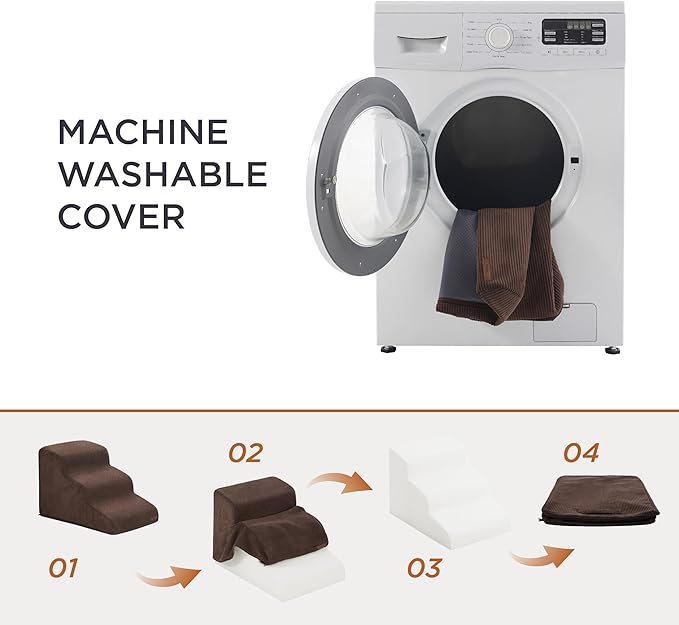 - Easy to Clean: Keeping these pet stairs for dogs fresh and tidy is a breeze. Simply remove the foam core and machine wash the outer cover separately in cold water on a delicate cycle. Please note, the foam core should not be machine washed or dried to ensure long-lasting use and comfort for your pets.