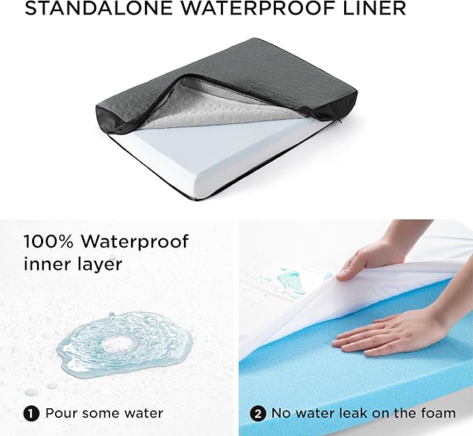 - Waterproof liner & Non-slip Bottom: 100% waterproof inner lining under the cover for the memory foam to prevent liquid from penetration. Non-slip dots on the bottom can fix the dog bed in a proper position. Please note that it is not suitable for pets with destructive chewing behavior.