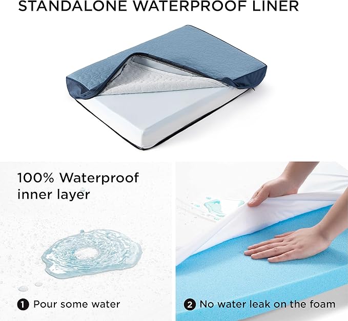 - Waterproof liner & Non-slip Bottom: 100% waterproof inner lining under the cover for the memory foam to prevent liquid from penetration. Non-slip dots on the bottom can fix the dog bed in a proper position. Please note that it is not suitable for pets with destructive chewing behavior.