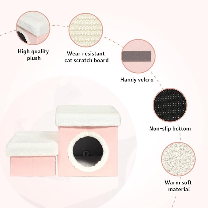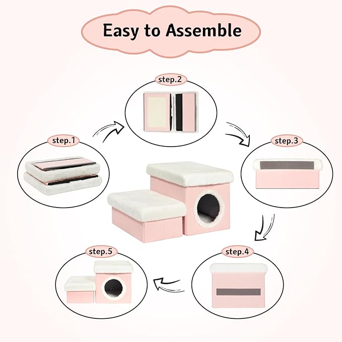 - 【3 IN 1 Pets House】: This product not only use as Pet house also can use as storage boxes and pet stairs. the storage box could use for toys and snacks, the pet house suit for many kinds of different little peppy. 2-Tier Pet Steps is stable enough which makes it more safe for small petty or kitty to get on bed, sofa or window.