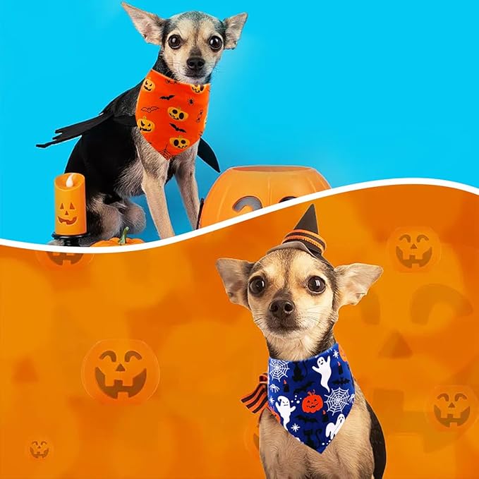 - Halloween Dog Scarf: our Halloween dog bandanas are printed with a variety of Halloween designs on the surface, such as pumpkin, bat, ghost and other Halloween elements, full of festive atmosphere, the ideal way to dress up your Halloween Day pet