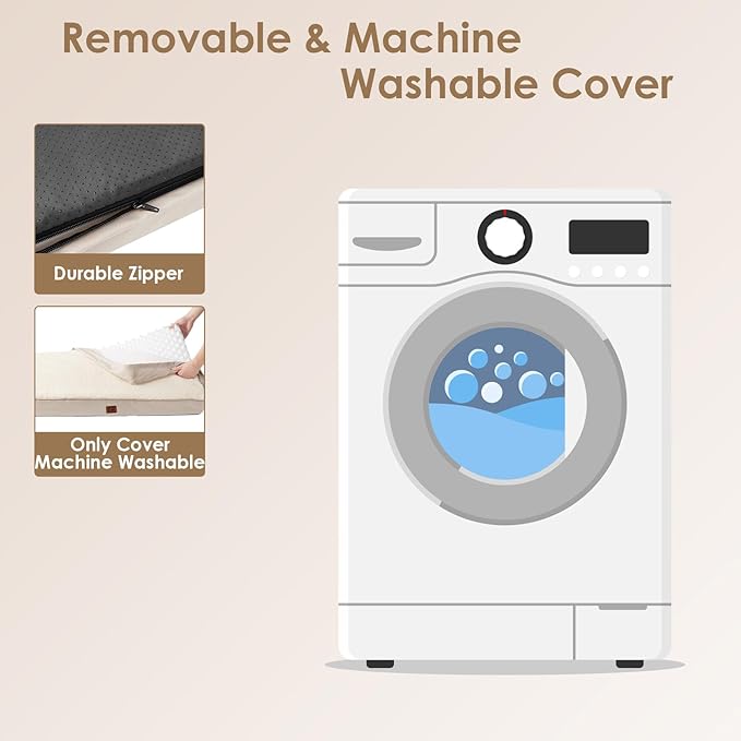• CARE INSTRUCTIONS: Zippered removable cover is machine washable. Tumble dry on low heat. DO NOT BLEACH. DO NOT IRON. Please note that the inner foam is not washable. After receiving it, leave it for 24-48h for rebound.