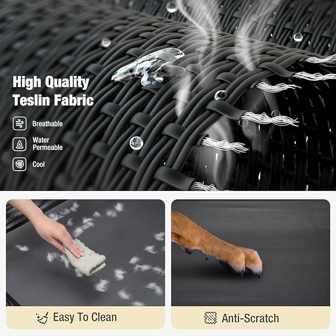 - All-Season Comfort: The Teslin Mesh mat not only allows the air to flow, but also allows the water to penetrate, keeping your pet cool in summer; The elevated dog bed lifts your dog 7.8 inches off the hard ground, mud or wet grass, alleviating joints pressure and keeping health;