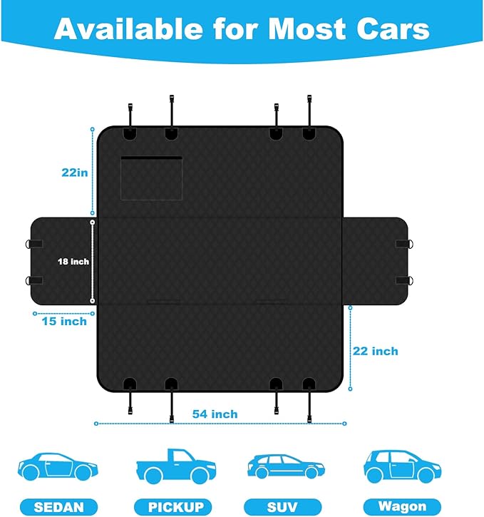 - 🐾4-IN-1 MULTIFUNCTIONAL: Pet car cover back seat protector is the ultimate accessory for pet owners and new car owners alike. It serves as a dog hammock with side wings, a bench car seat cover protector, and a trunk cargo liner to keep your car clean and scratch-free. Additionally, it can be easily transformed into a camping mat, perfect for enjoying picnics and outdoor activities with your family, friends, and beloved pets. Enjoy your travel time with a dog car hammock.