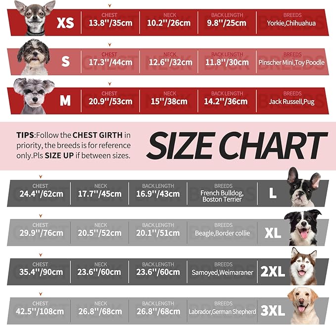 - For All Breeds Dog Snow Jacket:IECOii dog snow coat 7 sizes ranging from XS to 3XL suit for small medium large xl breeds dogs like Teddy,Poodle, Chihuahua, Bichon, Shih Tzu, Jack Russell, Scottie, Schnauzer, Pug, Boston Terrier, Beagle, Corgi, Dachshund,French Bulldog,pitbull,German Shepherd,Husky,Greyhound,Labrador, Golden Retriever, Doberman,Great Dane,etc.NOTE:Please measure your dog around widest part of the chest and lower neck, then refer to size chart.