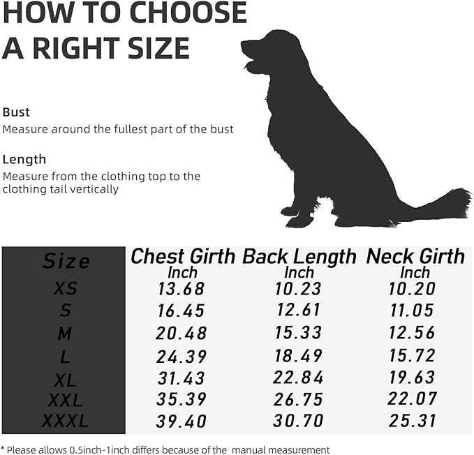 - Suitable For Dogs: Xs, S, M, L, Xl, 2xl, 3xl, Sizes Are Suitable For Small Medium And Large Dogs. To Ensure The Best Fit, Please Refer To The Product Size Chart And Measure Your Dog'S Chest And Length.