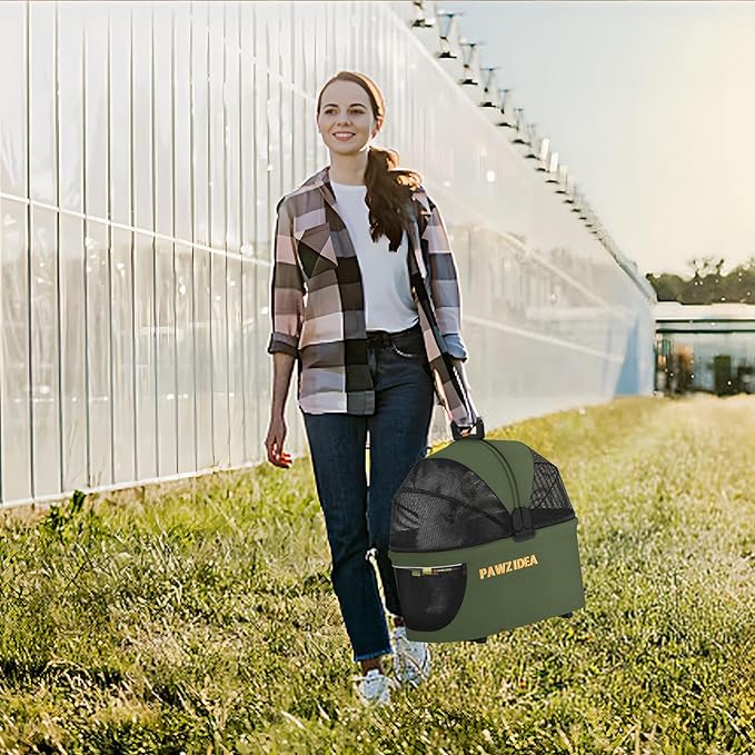 - 4-IN-1 Pet TRAVEL SYSTEM -Pet Stroller + Detachable Travel Carrier + Seatbelt Dogs Booster Car Seat Combo + Dogs/Cats House. Removable and washable canopy and seat cushion. Pet stroller with removable carrier with a larger easy-open zipper door allows your fur-kids to get on and off the puppy stroller freely.