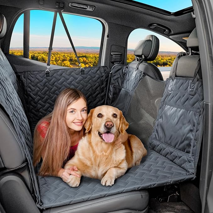 - 【Full protection】 The unique 7-layer design makes the dog seat covers for cars waterproof, anti-scratch, anti-slip, and easy to clean. The full wrap-around design protects both the rear seats and the rear doors.