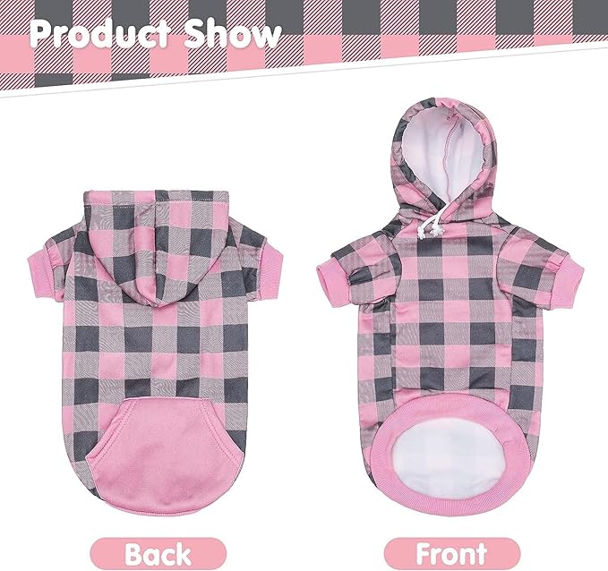 • GIFT FOR YOUR DOGS: The hoodie is designed with a classic plaid pattern and a kangaroo pocket, The costume is designed like a sports sweater, which looks very cool and fashionable. With the stylish sports dog hoodie, your lovely dog will be adorable at Halloween, Christmas, Thanksgiving, and Easter parties!