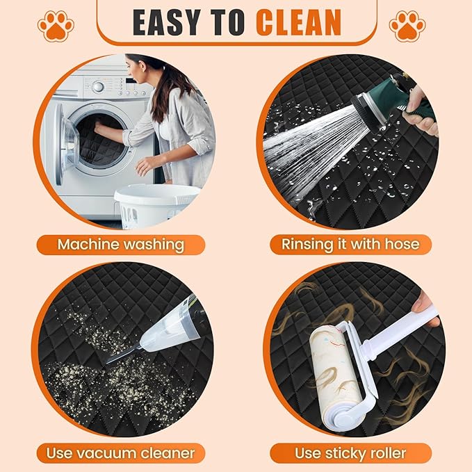 - WATERPROOF WEARPROOF DOG SEAT COVER, EASY TO CLEAN: Dog Car Seat Cover made from five layers of materials, Back Seat Extender is designed with double-stitched and water-resistant layers to provide heavy-duty comfort and protection. Back Seat Pet Cover protect your car entire back seat, car’s interior from muddy paws, excess dog hair and doggy drool. You can directly use a damp cloth or vacuum cleaner to clean the partial stains from the dog car seat covers.