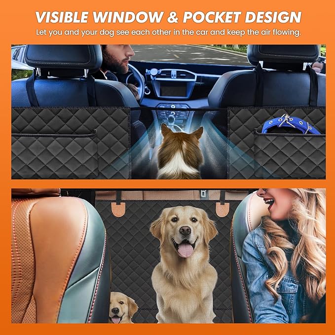 - MESH VISUAL WINDOW, EASE ANXIETY, ENJOY TRAVEL: Dog car hammock mesh window with zipper provides your pet with a fresh air circulation, ensure your dog feels cool in summer. Allow your furry best friend to keep you in eyesight, which ultimately keeps your pet safe and anxiety-free on car rides. Unzip the mesh window zipper, you can have a good interaction with your dogs.