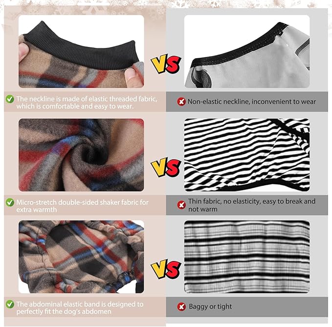 - CUTE AND FASHIONABLE: Our pajamas are designed with classic checkered pattern, perfect for pets who love to decorate. Make your pet look cute and eye-catching, making this dog onesie a perfect match for Christmas, New Year, Valentine's Day and all holidays.