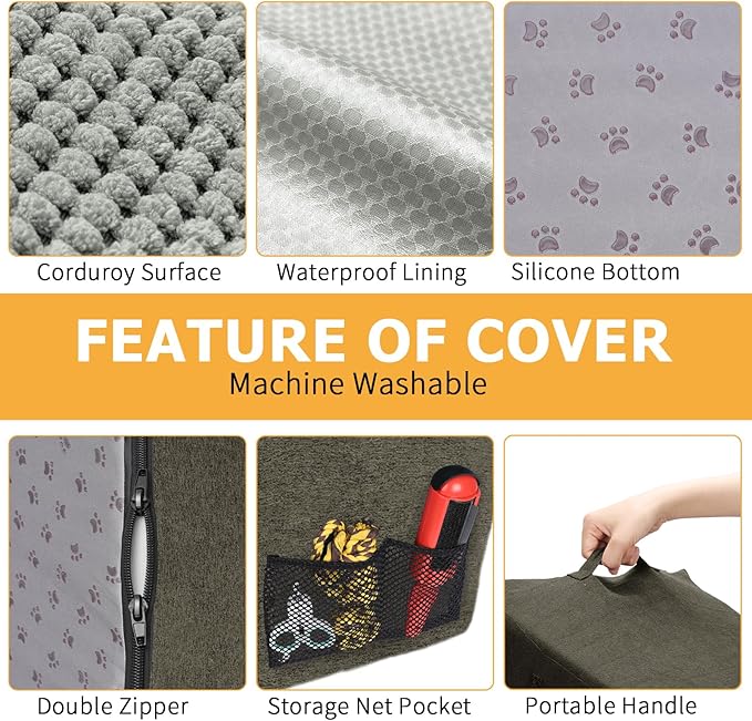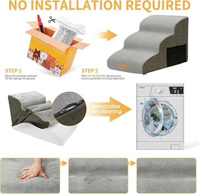 - Waterproof, Washable Cover: The surface of the cover is made of corduroy, the bottom of the dog paw pattern made of silicone, the sides and back are made of suede, all-round to achieve the effect of non-slip. Cover added waterproof layer to protect the sponge from getting dirty. Even if the pet accidentally pee on the dog ladder, will not leave a mark on the sponge. Only need to clean the cover can be. Cover can be machine washed.