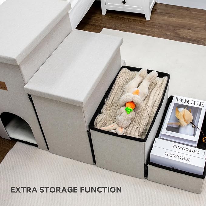- 🐾【3-IN-1 DOG STAIRS AND CONDO】: These Zerbuger pet stairs not only provide a stable and cozy place for your pet to rest, but also serve as a convenient storage area for your pet's clothes, toys, or any other supplies. The pet steps are covered with removable lids, Every steps are designed as storage boxes.