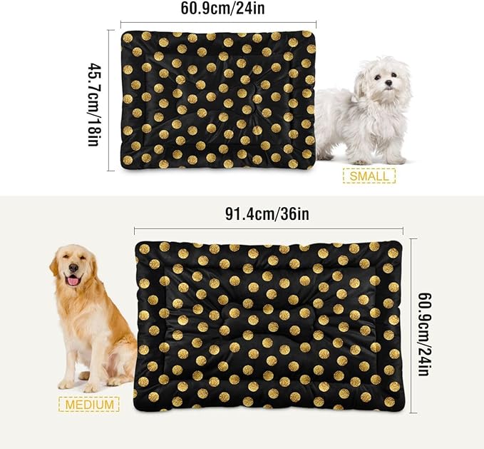 Polka Dot Black & Gold Pet Bed Pad Soft Dog Bed Mat with Anti-Slip Bottom 36'' x 24''