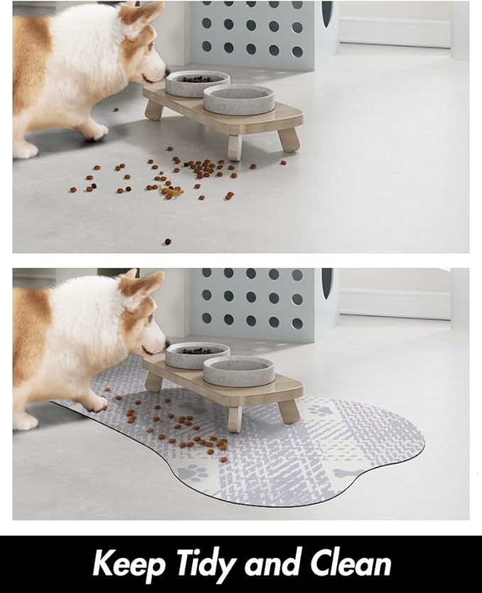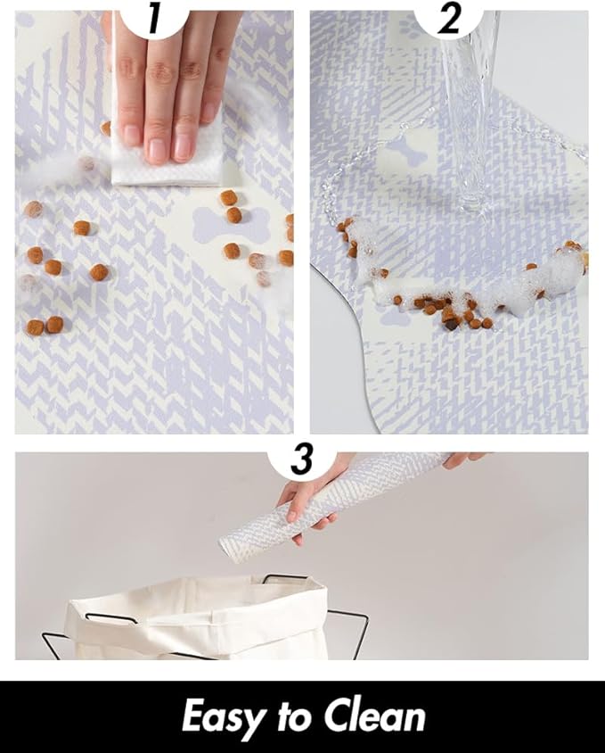 - Easy Clean & Pet Friendly: Simple cleanup steps - just wipe, rinse and dry the bottom for the next use. This pet food mats for floor provide a clean and designated area for your pets while eating. Brand-new material is poplular with most pets without strong odors. Give yourself peace of mind knowing that your pet is comfortable while eating.