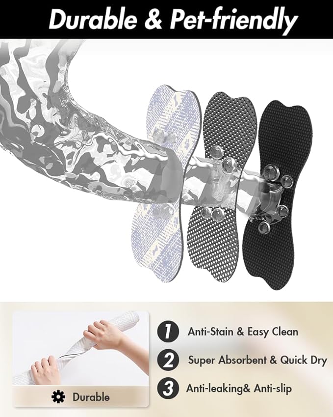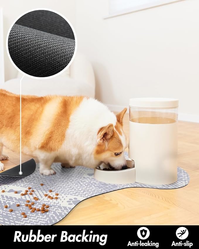 - Super Absorbent & Anti-Leakage: No matter how messy your pets make while eating or drinking, this dog water mat will absorb any spills completely and the waterproof rubber bottom can stop water from penetrating to the floor. This perfect dog food mats for floors keep your floor clean and dry.