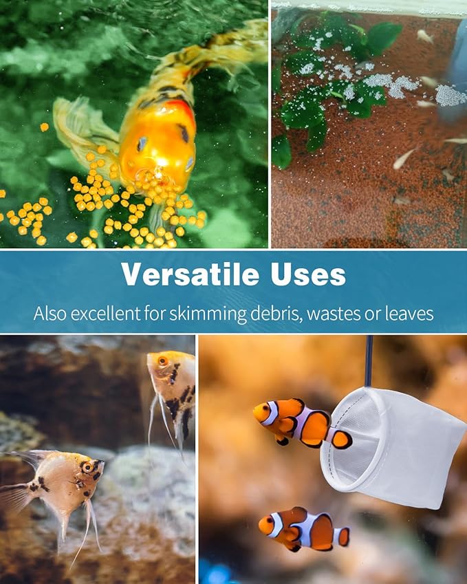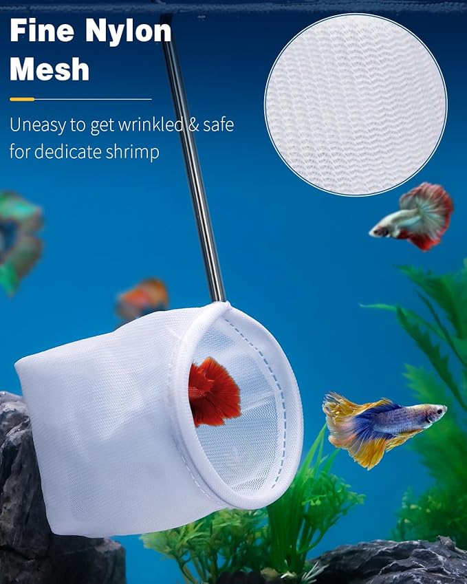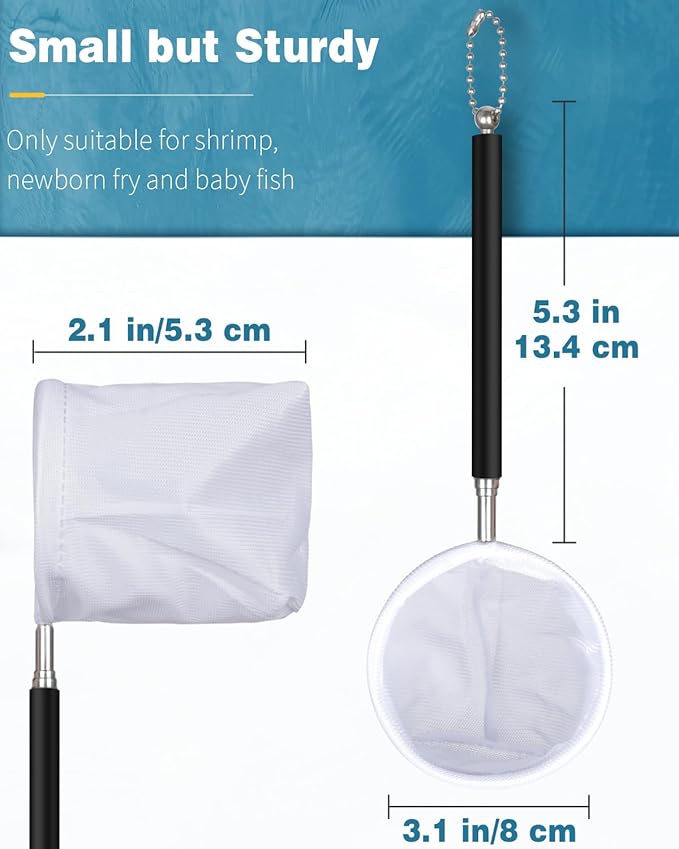 - Versatile Use: The tiny fish tank net can securely catch or transfer small fish and shrimp. Also excellent for skimming debris, food residue or leaves from aquariums or small ponds to keep them clean.