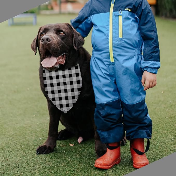 Black White Grid Dog Bandana Washable Pets Scarf Triangle Adjustable Handkerchief