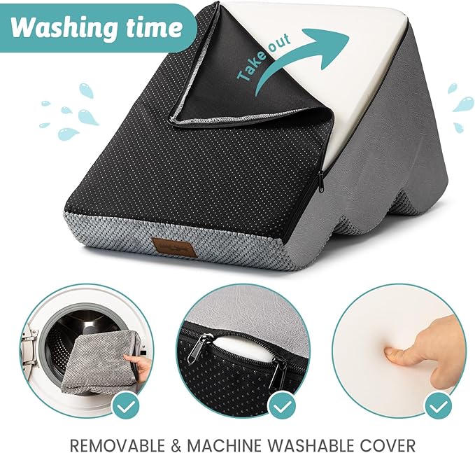 - 【EASY TO ASSEMBLE or CLEAN】For easy transportation, the dog stairs are purchased in vacuum compression packaging. After opening the vacuum packaging, cover it with a non-slip cover. After 48 hours of complete absorption of air, it will return to its original stair shape. Wait for the shape to recover. The non-slip cover supports machine washing or hand washing. Note: Please do not wash the sponge foam.