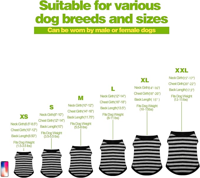 - Design: The shirts come in a sleeveless tank top design that allows for easy movement and flexibility. The striped patterns add a stylish touch to your dog's wardrobe, making them look cute and fashionable.
