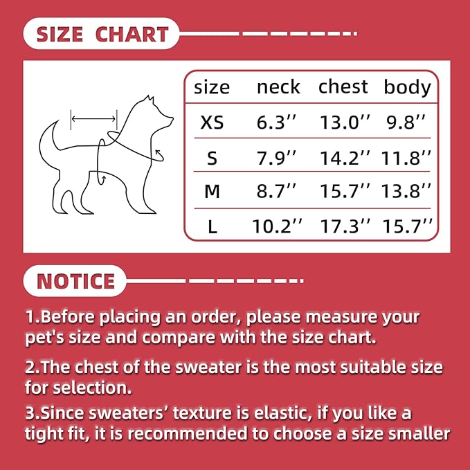 - Pure Color: Pure bright color, classic jacquard pattern, regardless of gender, suitable for all small and medium dog breeds to wear, please check the size we provide as a reference, if you like a tighter fit, you can choose a smaller size, if you like a looser fit, you can use the provided size instead.