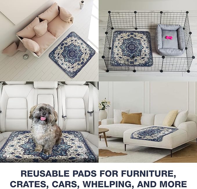 - Versatile Pet Mat for Crates, Playpens, and Floors - These multi-functional washable dog pee pads double as a comfortable mat for crates, playpens, or floor use. The soft, quilted surface provides a cozy resting spot for your pet, while the waterproof and leak-proof design protects your floors and furniture from accidents, spills, and pet hair. Perfect for travel, outdoor use, or as a designated pet area in your home, these versatile mats are a must-have for every pet owner.