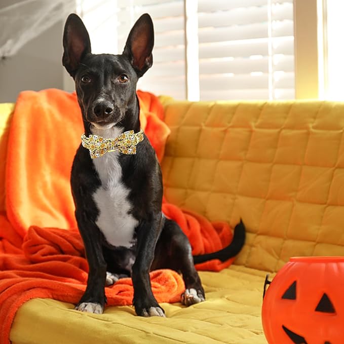 Lionheart glory Halloween Dog Collars Fall Dog Collar Skull Bowtie Dog Collar Girl Boy Pet Collar for Small Dogs Duty Adjustable Dog Collar with Bow