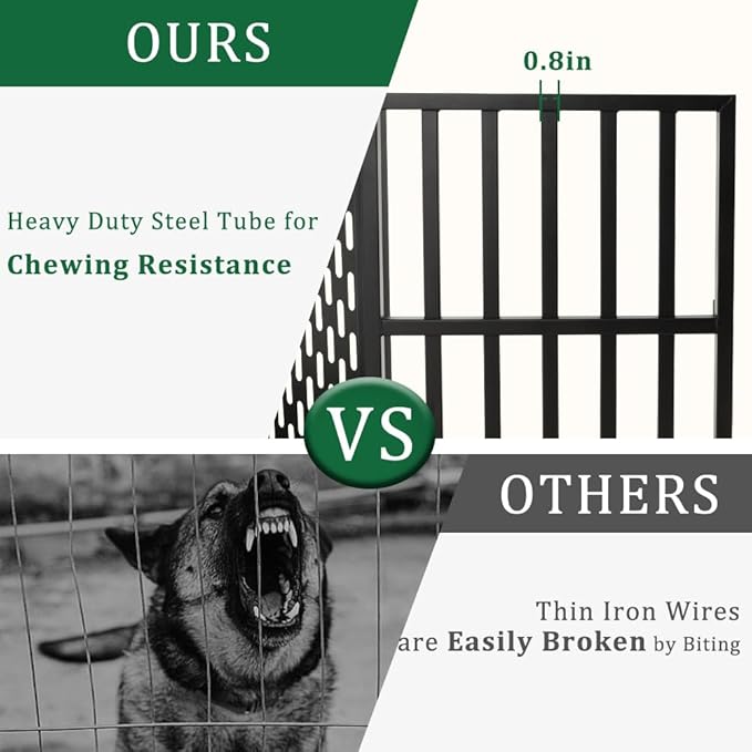 - 【Sturdy & Stable】 Dog crate furniture is made of heavy duty thickened steel for sturdiness. The rust resistant steel tube make our dog kennel furniture chew proof. Wear resistant waterproof table top holds up to 200 lbs.