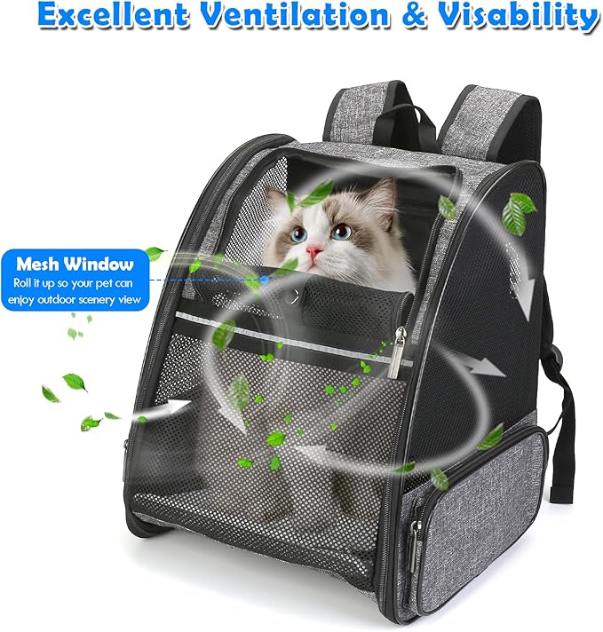 - Breathable & Visible: Three-sided tear-resistant PVC mesh design to ensure that your pet enjoys ventilation and you can easily keep an eye on them. Front window can be easily opened and let your cat or dog head out to keep a close eye on their surroundings.