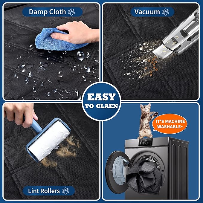 - EASY TO INSTALL & CLEAN - Setting up Your dog cover for car backseat is a breeze thanks to its straightforward structure. you'll have all the parts assembled in no time. Plus, with different installation methods, you can customize the cover to your needs and preferences. Hit the road with ease and confidence.No matter how dirty your pets get it, just wipe with some water or vacuum the dog car protector, the stain and hair is very easily removed. This dog car seat protector for back seat is also machine washable