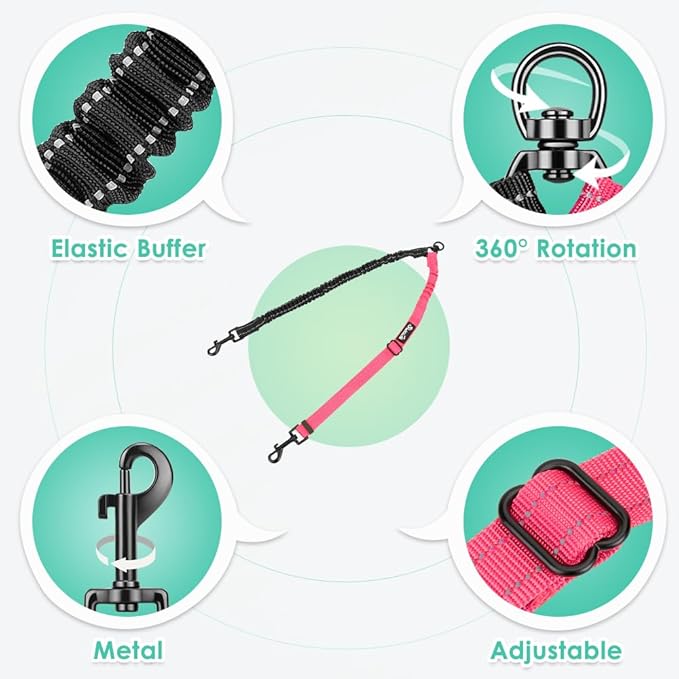 - COMFORTABLE & ADJUSTABLE --- Good adjustable length from 16.5 inch/42cm to 22.4 inch/ 60cm, the doubled elastic part up to 31.5 inch/80cm, so your dogs can get themselves comfy without restriction, suitable for walking a small dog with energetic or active dogs. What's more, the stretchiness of the leash splitter allows the smaller one to tug a little without bothering the other dog, and move freely around you.