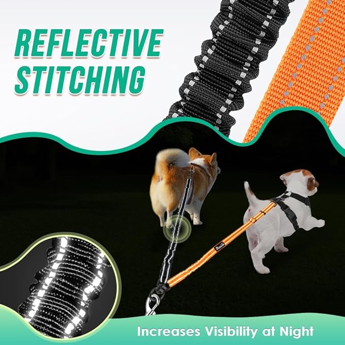 - SAFETY REFLECTIVE STITCHING --- The light-reflecting stitches on both sides of the double dog lead splitter will offer extra safety and visibility at night for enjoyable walks or runs. Furthermore, this dual dog leashes are available in bright and easy-to-see colors to help your dogs stand out with ease.