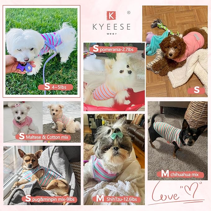 KYEESE 2Pack Dog Shirts Striped for Small Dogs Soft Stretchy Dog T-Shirts Lightweight Dog Tank Top Sleeveless Dog Vest Breathable Cat Shirt