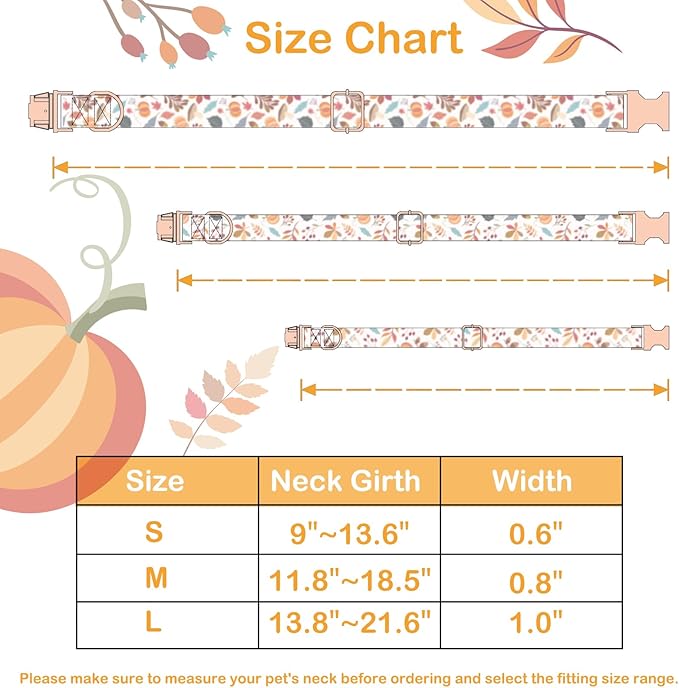 - ✔Stylish Design - The Dog Collar is not only comfortable for your beloved pet but also beautifully crafted with leaves, pumpkin Pattern design suitable for all occasions. When you're celebrating Halloween, your dog will be the center of attention with this adorable beige collar.