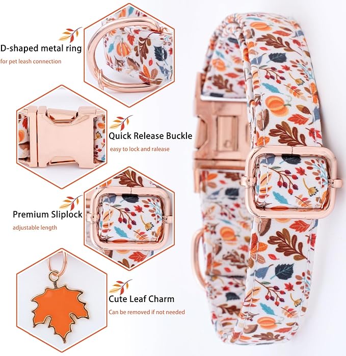 • ✔Stylish Design - The Dog Collar is not only comfortable for your beloved pet but also beautifully crafted with leaves, pumpkin Pattern design suitable for all occasions. When you're celebrating Halloween, your dog will be the center of attention with this adorable beige collar.