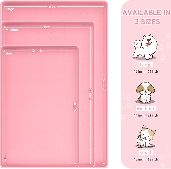 - Multiple Sizes & After-Sales: Service Our cat feeding mat and dog dish mats for floors waterproof come in 3 sizes and 8 colors, making them ideal for pets of all sizes. The dog food trays for floors can also be used as a rubber shoe mat tray, under sink mat, under sink tray, cat litter mat and litter box mat. If you have a chewer, please supervise him/her while using the cat bowl mat and dog bowl mat waterproof. Any issues, please feel free to contact us