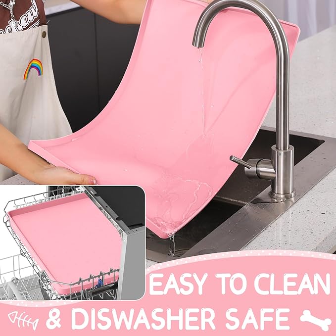 - Easy to Clean & Dishwasher Safe: You can fold the pet bowl mats for food and water to discard crumbs and rinse them down in a sink without deformation. Alternatively, the dog water matt for sloppy drinkers and dog matt for food and water bowl can be wiped down with a wet cloth. The pet water mat for dog bowl is also safe to clean in a dishwasher. If you have energetic pets, you can put the silicone pet food mats waterproof with edge under the pet food bowls every mealtime as they dry up quickly