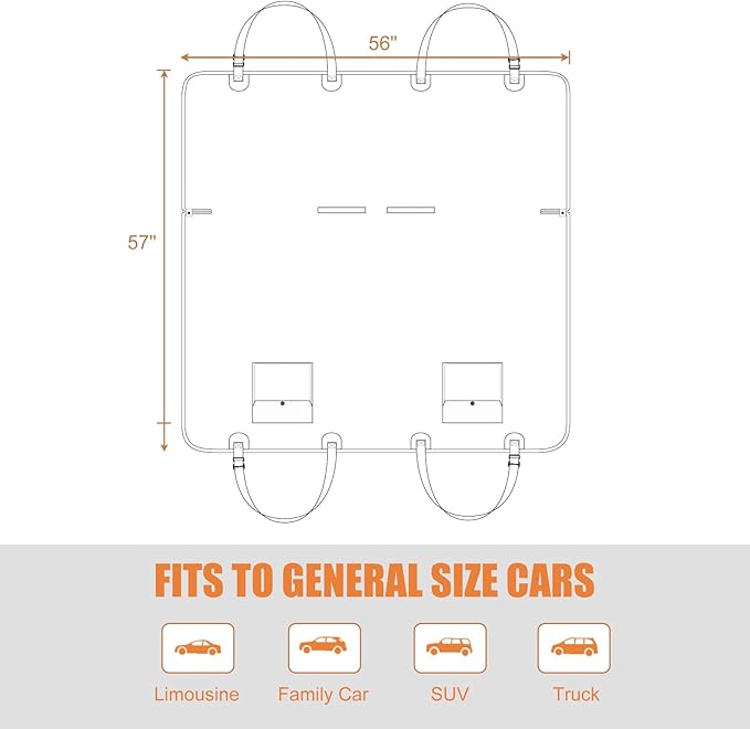 - QUALITY MATERIAL: Made with a waterproof backing and scratchproof material, this seat cover is designed to withstand the demands of daily use and provide reliable protection for your back seat. The ultimate solution for keeping your car clean and your dog comfortable during car rides. Size of 57" x 56".