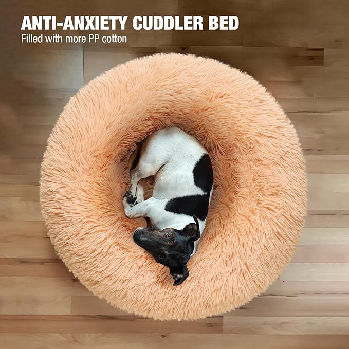 - Donut Dog Bed For Deep Restful Sleep. The donut shape dog bed creates a perfect haven for both dogs and cats who love to curl up and feel snug. The surrounding edges provide a sense of security and head & neck support to help them calm down faster for a more peaceful sleep.