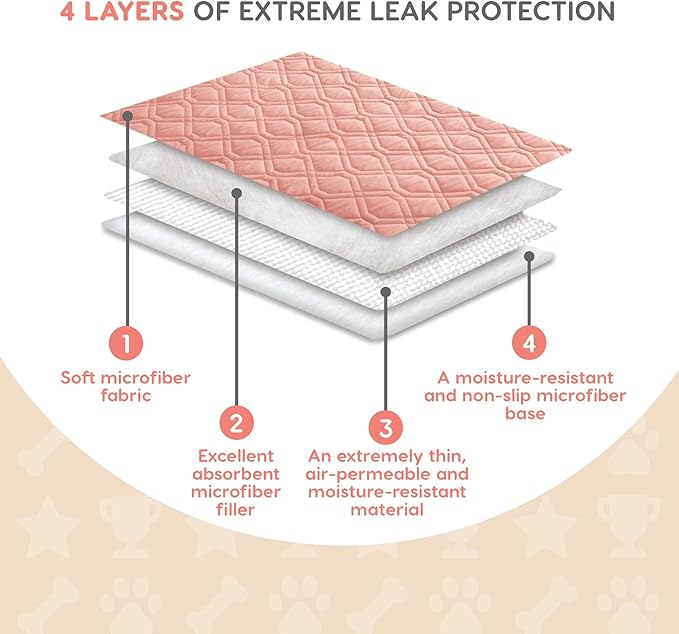 - FOUR LAYERS FOR RELIABLE PROTECTION. The 4 layers of the sheets are designed to absorb moisture better. In addition, the lower layer of the sheet is non-slip, durable, tear-resistant and an excellent absorber of unpleasant odours.