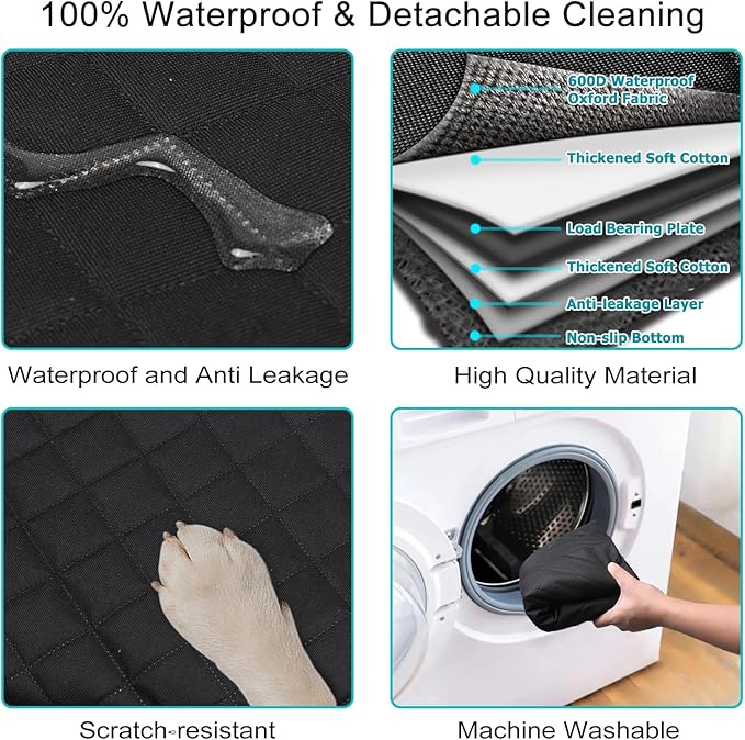 - [Waterproof&Anti-slip Design&Removable Cleaning]:Hard bottom dog seat cover has an anti seepage design that can prevent water, urine, slobber from soaking or leaking into the seats below.It has two fixing bolts that can be inserted into the rear seat and 4 adjustable fixing straps to fix and prevent slipping.Dog car seat cover hard bottom is easy to clean that has zippers to disassemble for washing.
